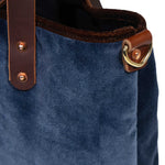 Inside, a split pocket keeps phone, wallet, keys, and glasses organized, while the roomy base and shallow profile make everything easy to see and grab. Rich mahogany leather handles and a matching center strap with solid brass closure add durability and polish, reinforced with copper rivets and velvet bound seams. A water-repellent cotton canvas lining keeps belongings protected.