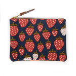 The pouch features a whimsical berry print on durable cotton canvas, adding a playful yet sophisticated touch to your everyday accessories. Inside, you'll find a water-repellent canvas lining that keeps your belongings safe and dry, no matter where your day takes you.