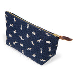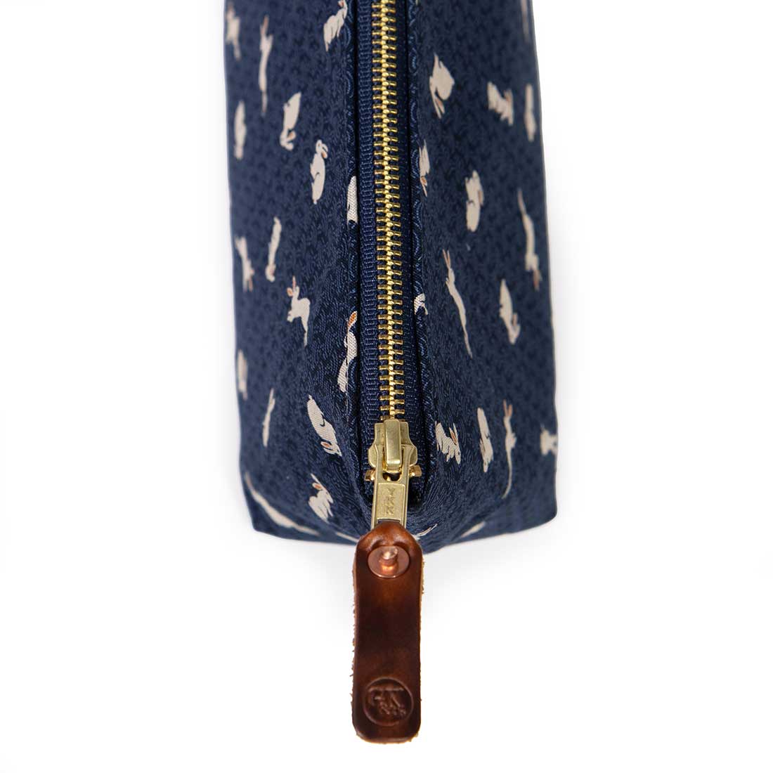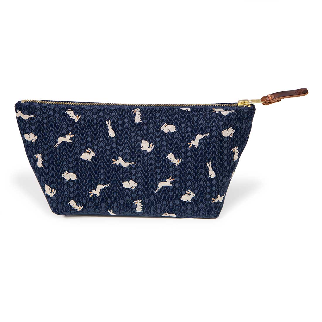 Elevate your travel essentials with our Nousagi Travel Clutch, where Japanese craftsmanship meets American artistry. This sophisticated zipper clutch features a charming Japanese pattern featuring field rabbits (or Nousagi in Japanese) on a  patterned background in shades of medium and dark navy.  The fabric, meticulously crafted in Japan, brings an element of global luxury to your accessories.