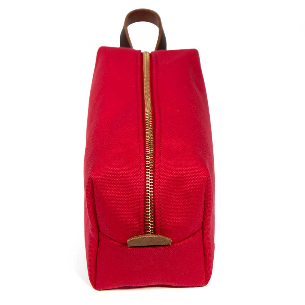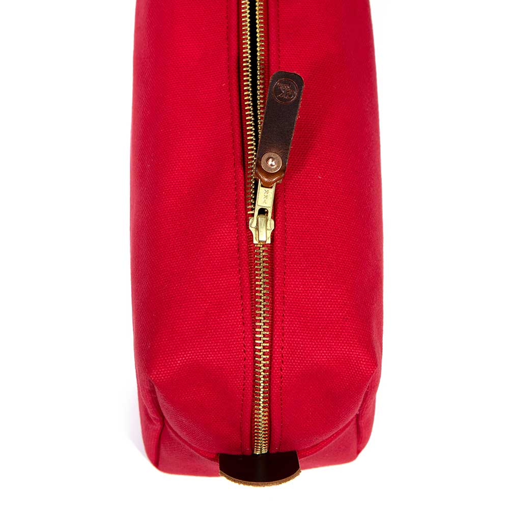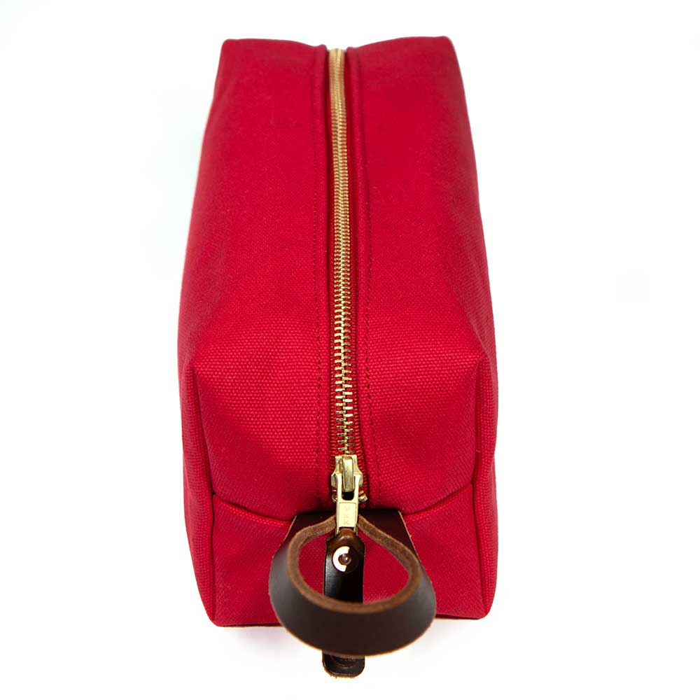 Our Limited Edition travel kits (dopp kits or toiletry bags) will keep you organized and stylish whether you are taking the trip of a lifetime or just heading out for a long weekend. Our sturdy canvas kits in solid colors are utilitarian and sophisticated at the same time. Aside from the outer fabric, taped seams and a water-resistant cotton canvas lining help to protect all of your valuables from the occasional leaky bottle. Sturdy mahogany leather handles and pulls add to the look and durability of the kit.