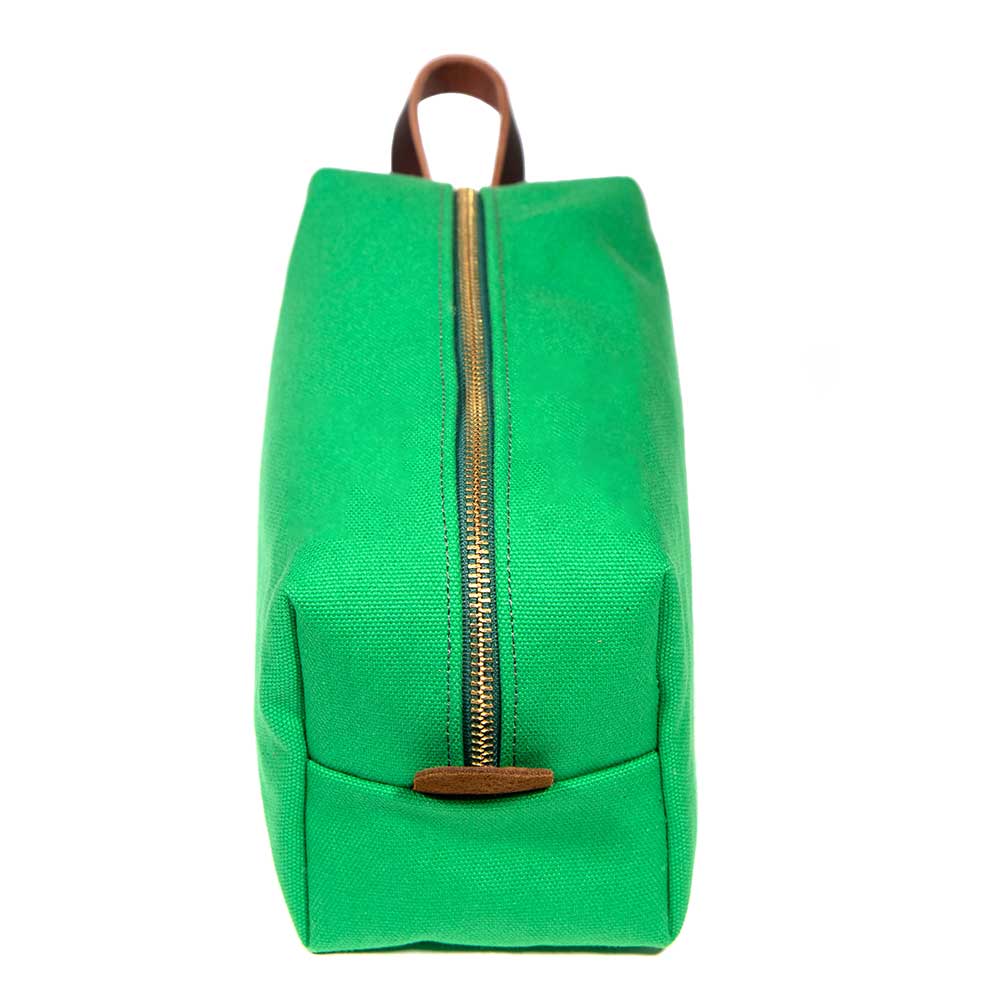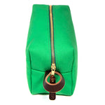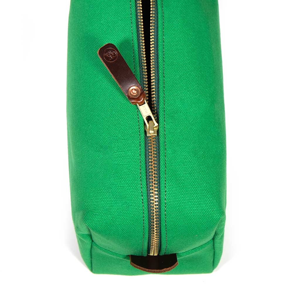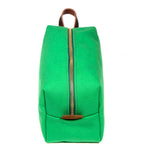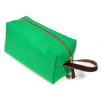Our Limited Edition travel kits (dopp kits or toiletry bags) will keep you organized and stylish whether you are taking the trip of a lifetime or just heading out for a long weekend. Our sturdy cotton canvas kits in solid colors are utilitarian and sophisticated at the same time. Aside from the outer fabric, taped seams and a water-resistant cotton canvas lining help to protect all of your valuables from the occasional leaky bottle. Sturdy mahogany leather handles and pulls add to the look and durability of the kit.